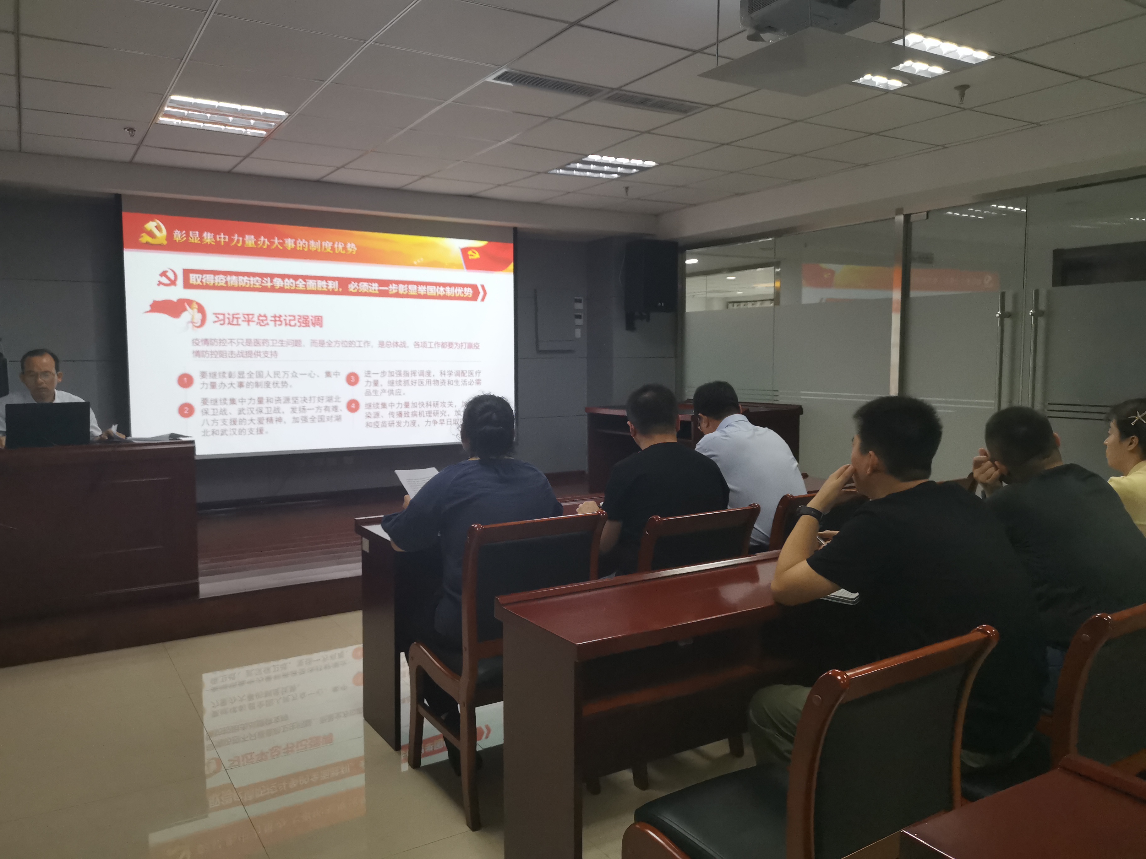 2020年7月2日上午,中共承德市國(guó)控投資集團(tuán)有限責(zé)任公司第二支部委員會(huì)支部書記焦俊良同志以“在大考中彰顯中國(guó)特色社會(huì)主義制度優(yōu)勢(shì)”為題,為全體支部黨員和入黨積極分子上了一堂別開生面的黨課。