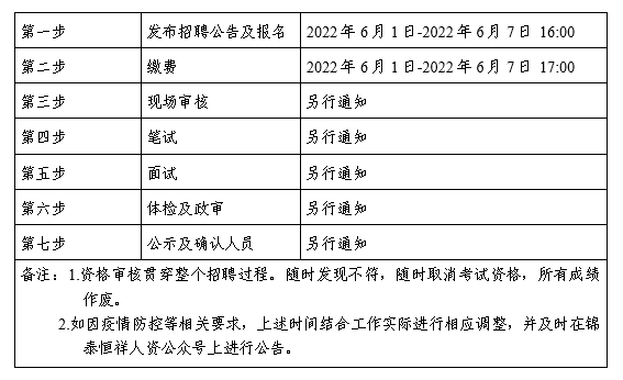 (二)體檢時間、地點及注意事項在“錦泰恒祥人資公眾號”進(jìn)行通知。