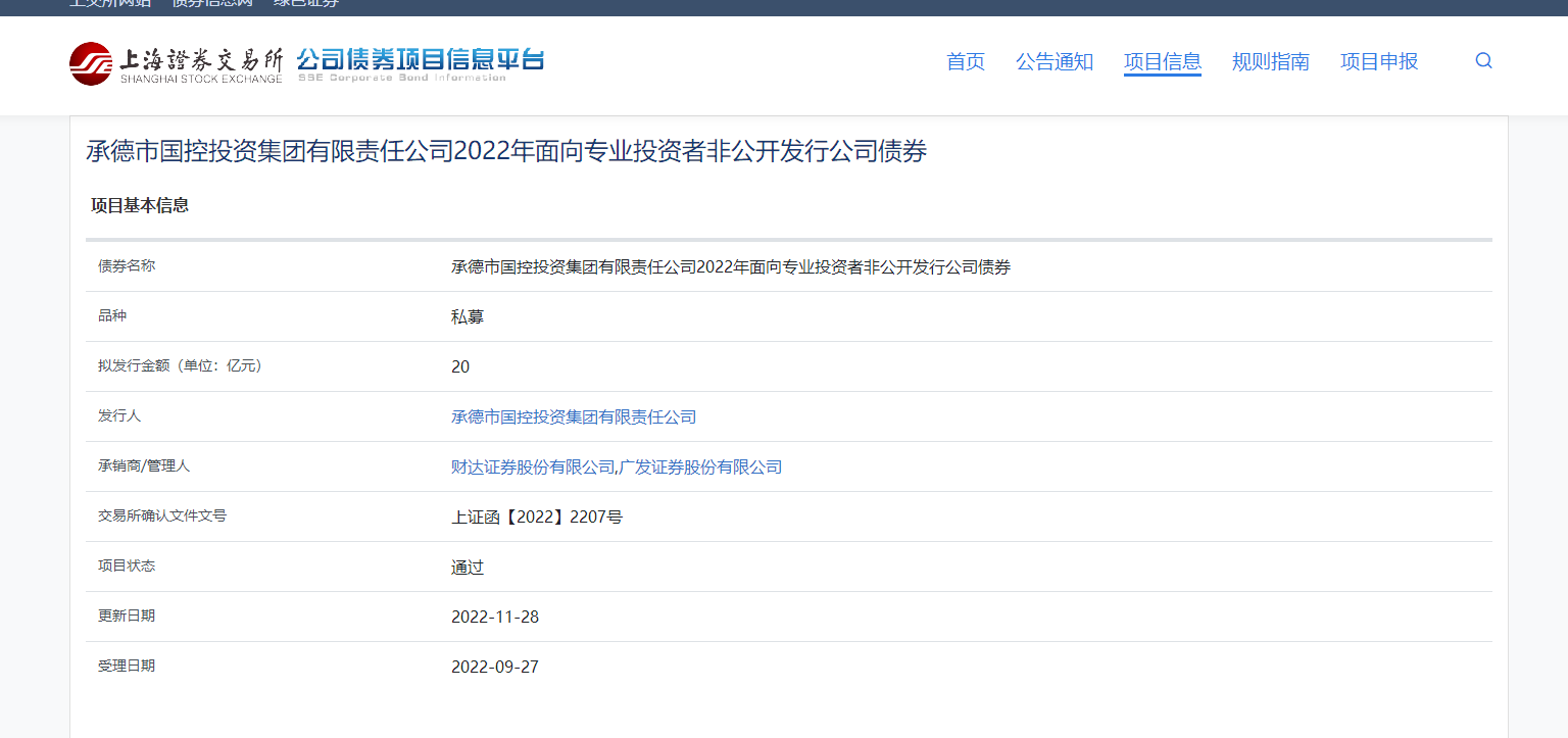11月29日,集團(tuán)公司收到上交所《關(guān)于對(duì)承德市國(guó)控投資集團(tuán)有限責(zé)任公司非公司發(fā)行公司債券掛牌轉(zhuǎn)讓無(wú)異議的函》,同意市國(guó)控集團(tuán)非公開(kāi)發(fā)行20億元公司債券,專項(xiàng)用于償還“20承控01”公司債券等到期債務(wù)。